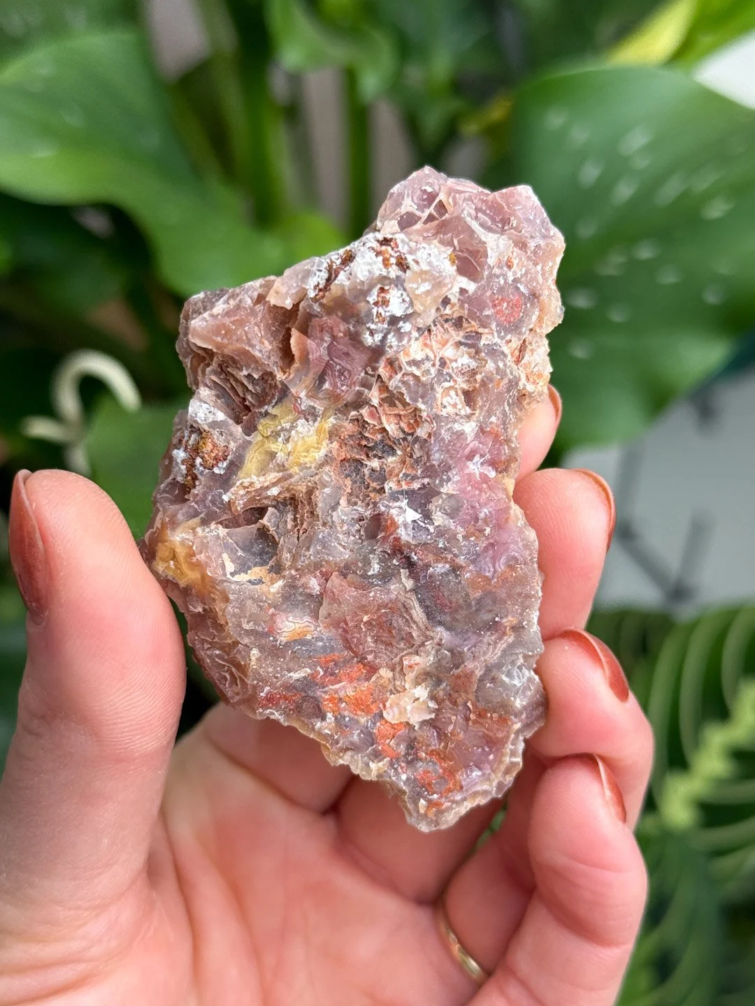 This unique Agate displays a vibrant blend of earthy hues, with alternating tones of warm yellow, rich amber, and deep red. The intricate layers form a captivating mosaic like pattern that sets it apart from other Agates from this mine.