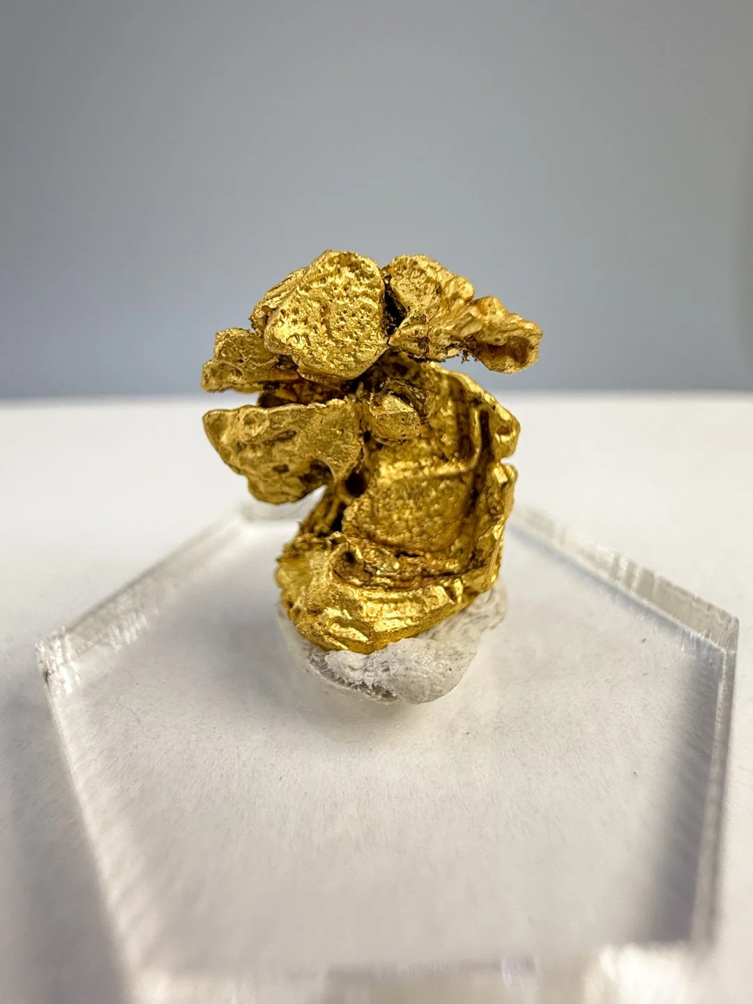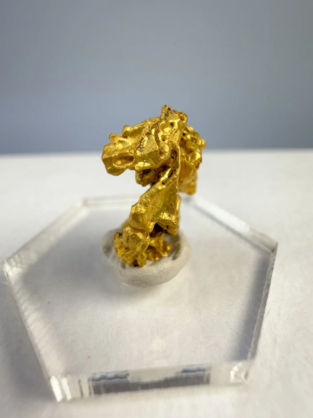 This exceptional Aquamarine crystal has the most incredible clarity, with two tones of crisp, sky blue that are refreshing to look at. The crystal has an amazing natural hexagonal shape, with a flat and well-formed termination. Along the sides and towards the bottom, there are some shimmery, golden Muscovite crystals alongside a couple of small Quartz crystals that add to the beauty and uniqueness of this piece. On the tip, there is a natural interference marking from where another crystal was likely originally growing up against this crystal. However, this crystal is in excellent, pristine condition, with no chipping or damage.